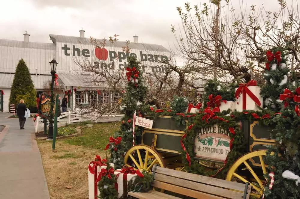 They do holiday decorating up right at Apple Barn Cider Mill & General Store! The Christmas spirit takes over as soon as you arrive! This family farm specializes in growing apple crops and has for decades now! Check out the Apple Barn Christmas & Candles Shop for unique holiday gifts and treasures! No trip here is complete without a wonderful meal at Applewood Farmhouse Restaurant or Applewood Grill.