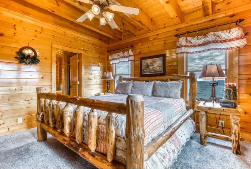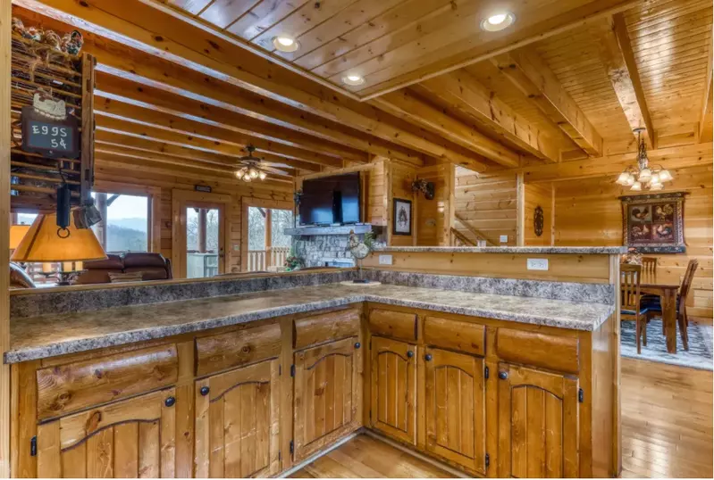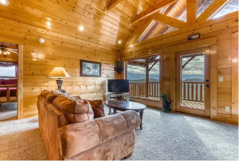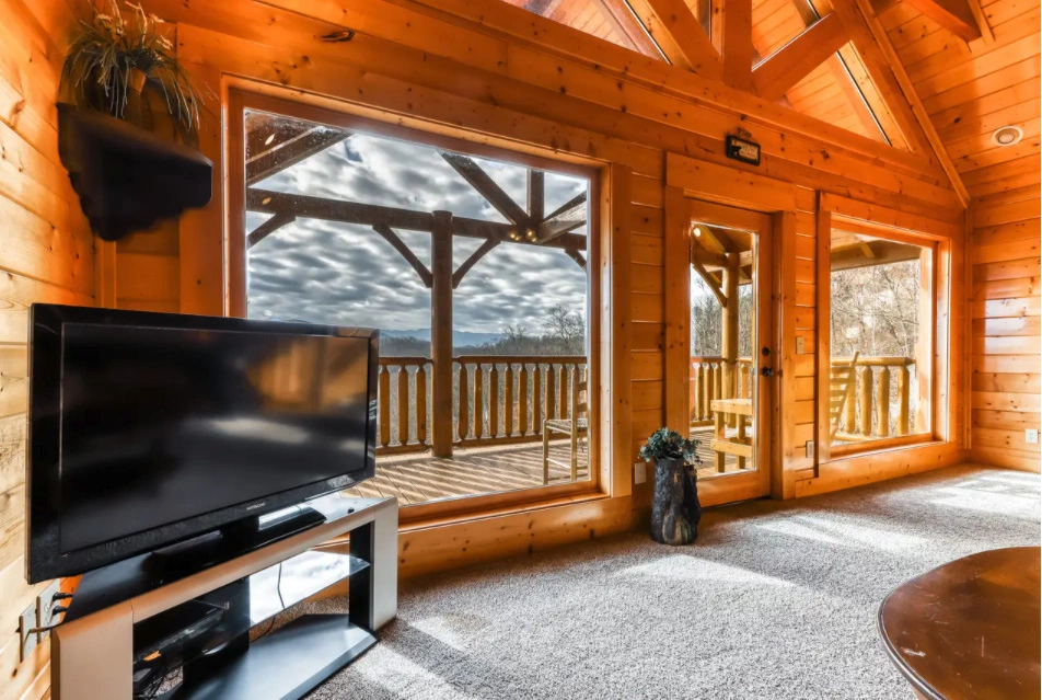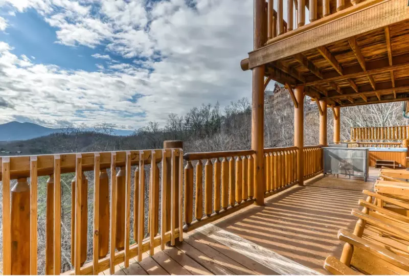 Lower Deck: Enjoy the serene beauty of the Smoky Mountains from the lower deck, complete with rocking chairs for peaceful moments.
