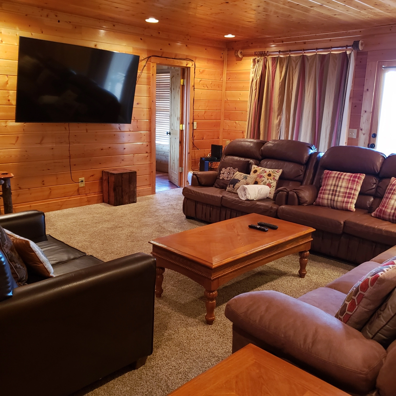 Sitting Area: A cozy sitting area with two couches, a loveseat, and a TV offers the perfect place to unwind.