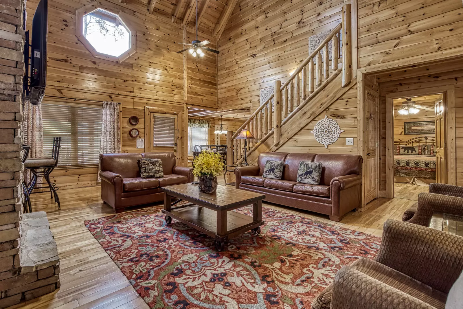Welcome to MOUNTAIN BLESSINGS! This wonderful four-bedroom cabin is designed to accommodate up to 12 guests, allowing you to gather your family and friends for an unforgettable vacation in the picturesque Pigeon Forge/Gatlinburg area. Brimming with an array of amenities, this spacious cabin presents an abundance of delightful surprises. It effortlessly combines relaxation and entertainment, making it the perfect getaway. Whether you choose to unwind with a movie on the DVD player while lounging in front of the impressive 50” flat-screen TV in the great room, or prefer the gift of meaningful conversations by the cozy stone fireplace, your stay here promises an exceptional experience.