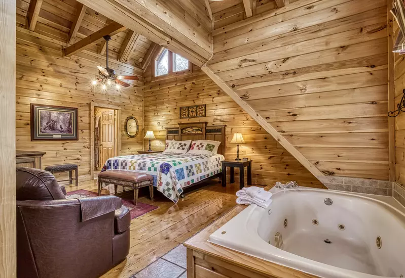 A restful night's sleep is a luxury you'll relish and retiring to bed at "Mountain Blessings" will be as exciting as Christmas morning itself. Each of the four bedrooms features a king-sized bed and satellite TV for your ultimate comfort. The master suite is a true indulgence, complete with a luxurious Jacuzzi by the bedside and a charming fireplace.