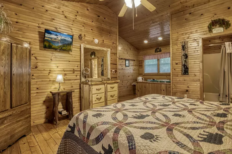 Very convenient location near downtown main Parkway. Free long-distance, High Speed WIFI internet, two levels, SPACIOUS, PRIVATE, TWO MASTER BEDROOM SUITES each with a TV. Your family will absolutely love this very spacious log cabin! Sleepy Bear is an inviting log cabin, just waiting for you and your loved ones.